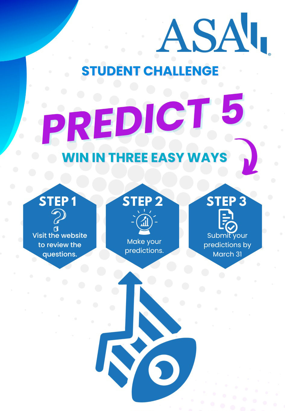Predict Five is a world-wide competition for students enrolled in high school, college, or graduate school that involves predicting events to take place in April 2025. The contest coincides with Mathematics and Statistics Awareness Month, so it is an opportunity for statistics and data lovers everywhere to share their zeal with friends and colleagues.